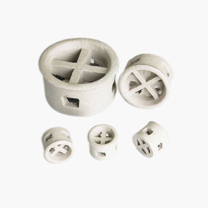 陶瓷階梯環(huán)吸收了短拉西環(huán)的特點(diǎn),也改變了填料的環(huán)高與直徑相等的習(xí)慣,降低了環(huán)的高度,減薄了材質(zhì)的厚度,并在環(huán)的側(cè)端增加了翻邊。