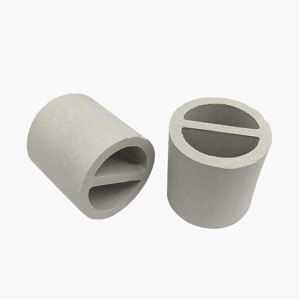 陶瓷一字環(huán)又被稱之為陶瓷勒辛環(huán)。它是在拉西環(huán)原有基礎(chǔ)上基于增加填料的比表 面積和強(qiáng)化傳質(zhì)效率的想法之上在其中間加入像漢字一的一般的隔板而設(shè)計(jì)出來的。形象化地稱它為一字環(huán)。陶瓷一字環(huán)是由陶瓷拉西環(huán)改良形成,比陶瓷拉西環(huán)有更大比表面積和更好的抗壓強(qiáng)度,擁有優(yōu)異的耐酸和耐熱性,能夠并且能耐除氫氟酸以外的各種無機(jī)酸、有機(jī)酸及有機(jī)溶劑的腐蝕,并能夠在高溫或者低溫的環(huán)境下使用,因此其使用范圍非常廣泛。