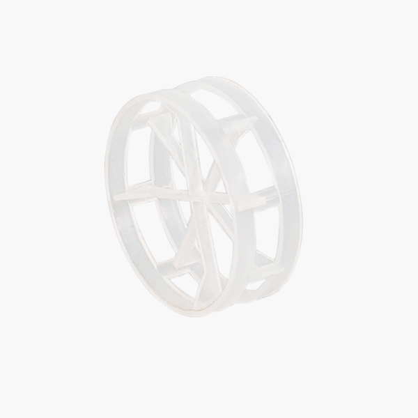 塑料扁環(huán)填料是一種在拉西環(huán)的基礎(chǔ)上,結(jié)合鮑爾環(huán)的優(yōu)點改進而成的一種新型塑料填料產(chǎn)品,其高徑比為0.2-0.4,取消了階梯環(huán)的翻邊,采用三條Y形筋片提高填料強度,在亂堆時能有序排列,流道結(jié)構(gòu)合理,壓降低,在處理能力和傳質(zhì)性能上均有所改善。